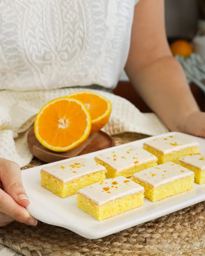 Un dato curioso… La naranja es una de las frutas más cultivadas del mundo, y su aroma es conocido por tener efectos energizantes y de mejora del ánimo. Así que además de ser deliciosos, estos cuadraditos también son una pequeña dosis de alegría en forma de postre.