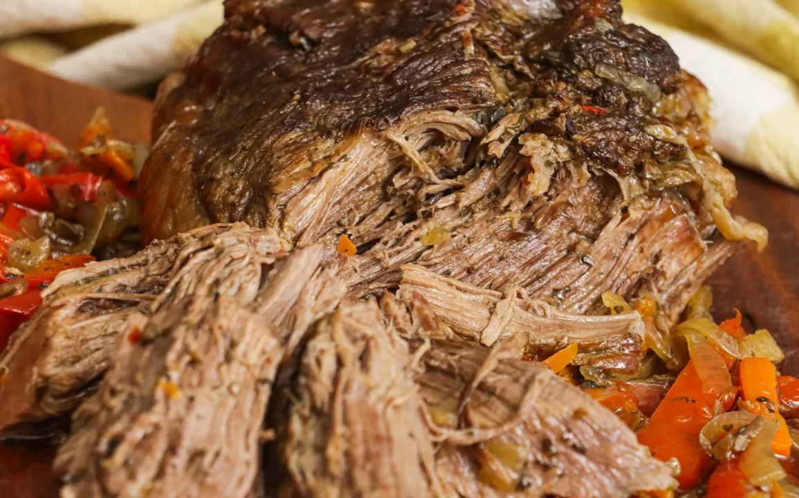 Cómo preparar una Carne al Horno con vegetales bien tierna y jugosa, ideal para desmechar y disfrutar en familia.
