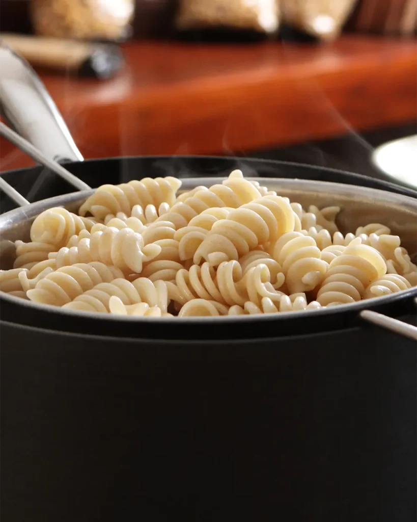 Una vez que hierve, añadir la pasta y cocinar durante unos 8 minutos hasta que estén “al dente”.