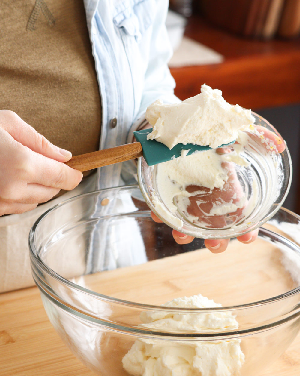 Lo ideal, al ser varios huevos, es romper los huevos de a uno en un bowl a parte y luego añadirlo al bowl con nuestro queso crema. De esta manera, si algún huevo no estuviera en buen estado, lo detectamos en el momento y descartamos antes de añadir a la mezcla.