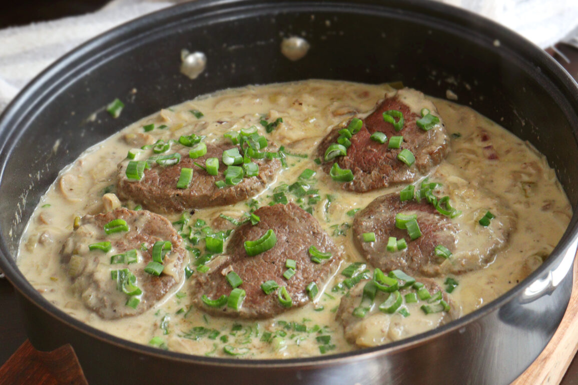 Una receta simple y deliciosa para disfrutar de una carne tierna con todo el sabor que le aporta la salsa de crema al verdeo con champiñones.