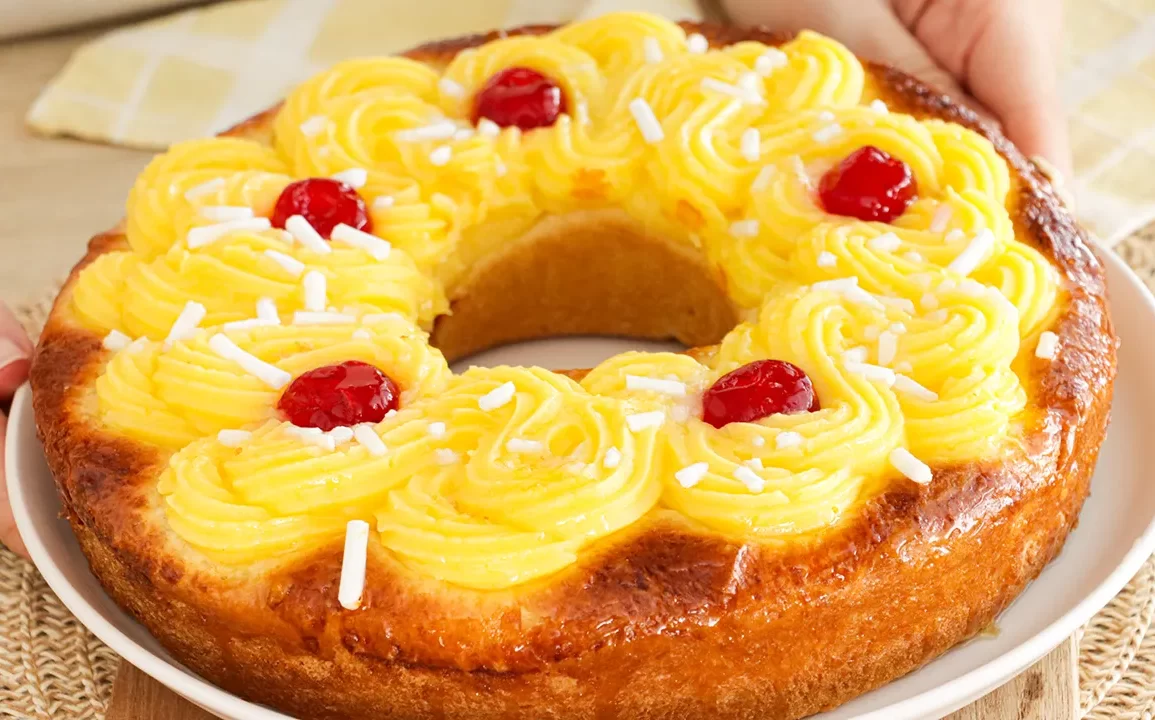 Esta receta de rosca de Pascua fácil combina una masa tierna y aireada con una decoración irresistible de crema pastelera, cerezas confitadas y azúcar granulada. El resultado es una rosca húmeda, delicada y llena de sabor, ideal para compartir en el desayuno o la merienda.