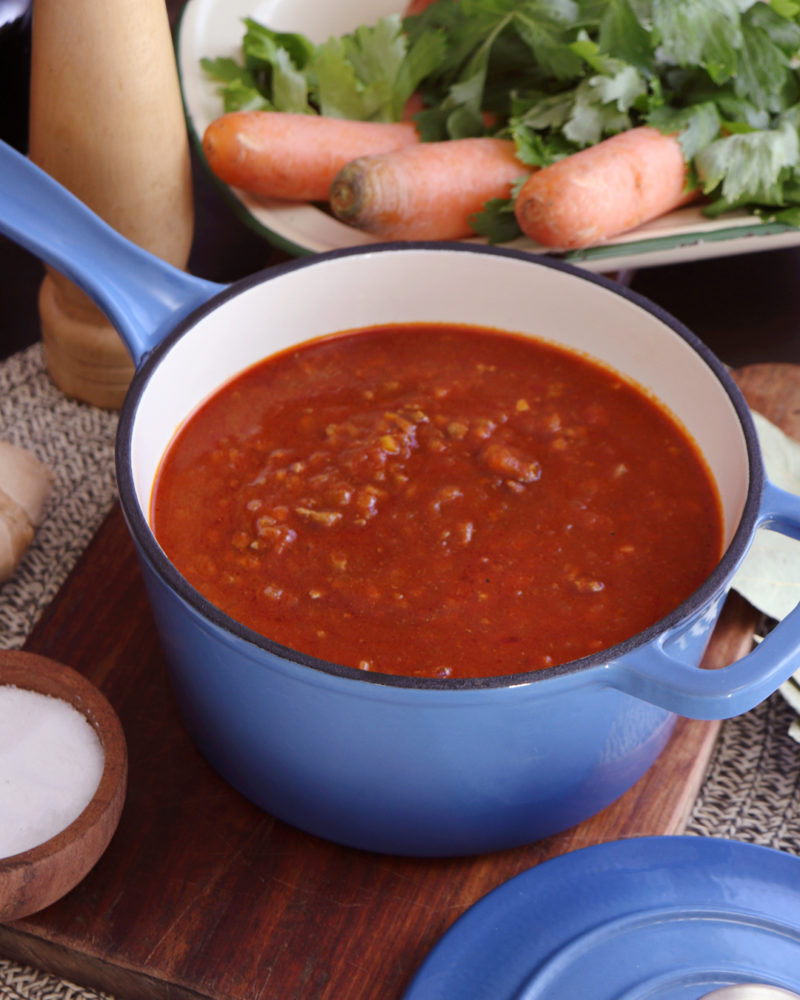 Una salsa ideal para disfrutar sobre un buen plato de Pasta Seca o Pasta Fresca como también utilizar en la receta de Pasta al Horno que compartimos anteriormente.