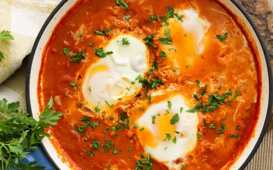 La Shakshuka es un plato simple pero increíblemente sabroso, donde los huevos se cocinan directamente en una salsa de tomate especiada con cebolla, ajo y pimientos. El resultado es una preparación reconfortante, aromática y perfecta para cualquier momento del día.