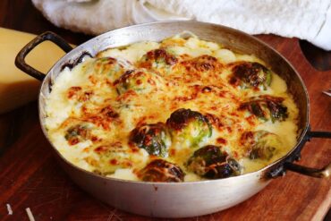 Luego agregar la cebolla hasta que se vea transparente. - Hacer espacio en el centro de la sartén, colocar los repollitos con el corte hacia abajo y cocinar durante 5 minutos.