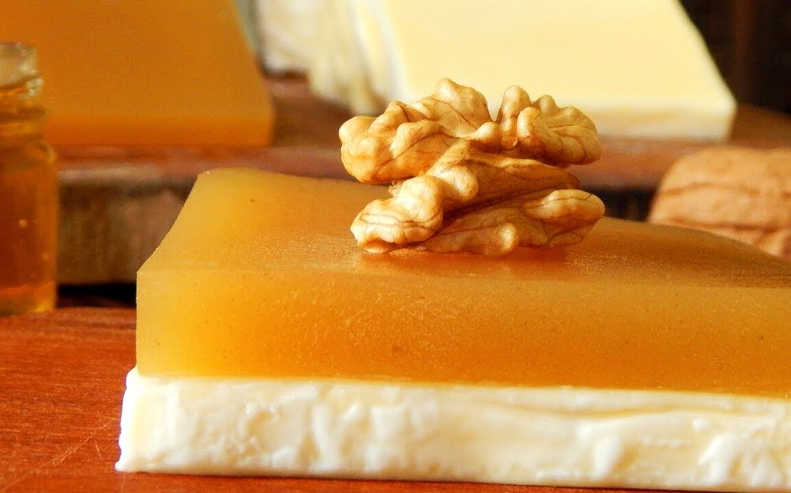 Cortar fetas de queso y dulce del mismo espesor y tamaño.