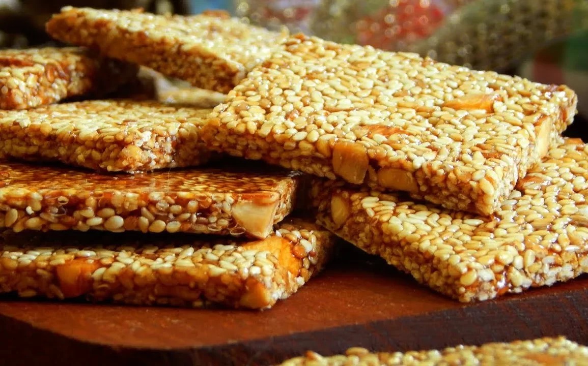 Turrón crocante de semillas de Sésamo y Almendras, conocido como Cubbaita o Giuggiulena, un dulce típico Italiano de Sicilia.
